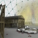 Using CG imagery and found video footage, Relics is a video animation of slow panning over a suburban housing estate being built within a geodesic glass dome. Within this hermetic environment, chrome blobs lay on the ground abstracting the human form with its embedded MRI scans of the artist's body, while also reflecting nearby figures on a swing and fireworks in the distance. Borrowing the visual language of architectural visualisation, games and the Internet, Alwast's video aims to engage personal and collective musings about the gradual integration of constructed ideals into the psyche and body'.