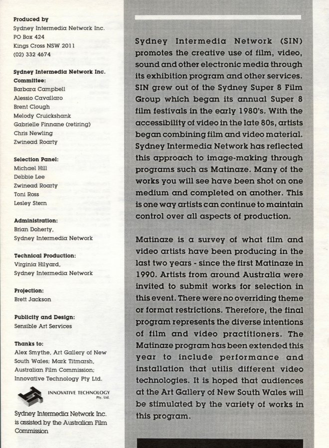 National survey of independent film & video art.