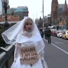 Klose’s video works such as Bonjour Paris, Je suis une artiste Aussie! [2007] and Film For My Nanna [2006] are particularly fine examples of the artist’s methodology. In Bonjour Paris the artist is seen wandering along the Seine in Paris holding a punning sign that reads Bonjour Paris! Je’ Suis une artist [Aussie]’. Klose is clearly mortified by her own actions. Film for My Nanna sees the artists wandering the streets of Melbourne, again holding a sign, this time reading: Nanna, I am still alone, except this time Klose is wearing a second-hand wedding dress.
